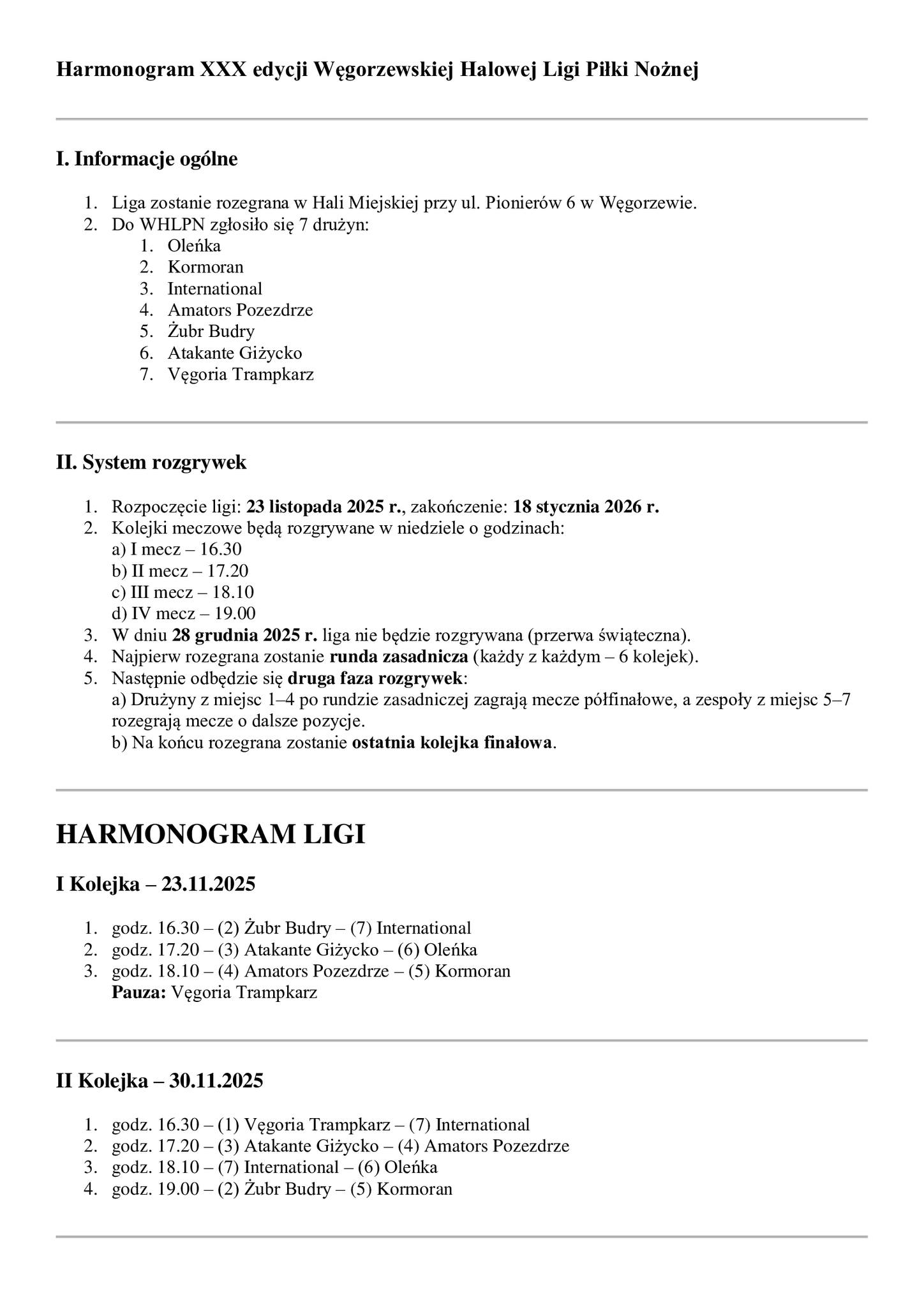 Termin rozgrywek: od 23 listopada 2025 r. (niedziele od godz. 16:30)