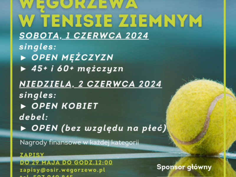 Zapisy do Amatorskich Otwartych Mistrzostw Węgorzewa w Tenisie Ziemnym 01-02.06.2024 roku