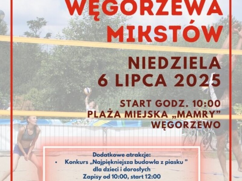 - Turniej siatkówki mikstów – start o 10:00, zagra 12 par